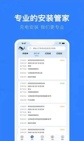 1.可以一键处理工作,去到用户指定的地方进行充电桩的安装。