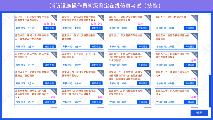 初级鉴定在线仿真考试系统是一款提供消防理论和技能的在线模拟考试软件。用户通过该软件进行理论模拟考试与技能考核,针对理论考试,软件在线命题,考题随机组合,用户答卷提交技能出分。针对技能考核,软件提供各个技能学习视频,帮助用户逐一击破各种技能。