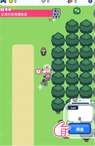 3、通过滑动屏幕的方式可以控制小猪移动,跟随地图上的指引去调查附近的道具;